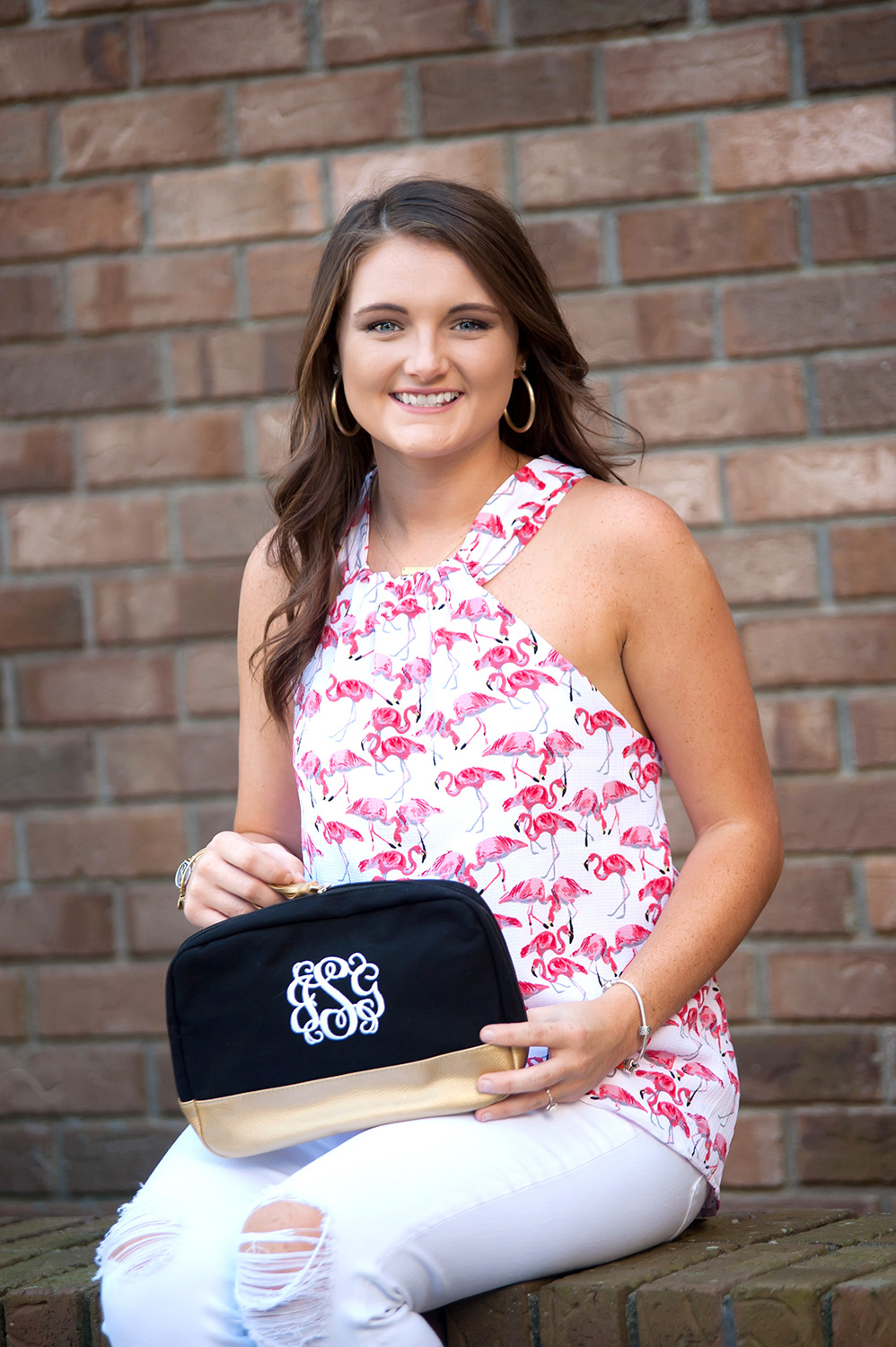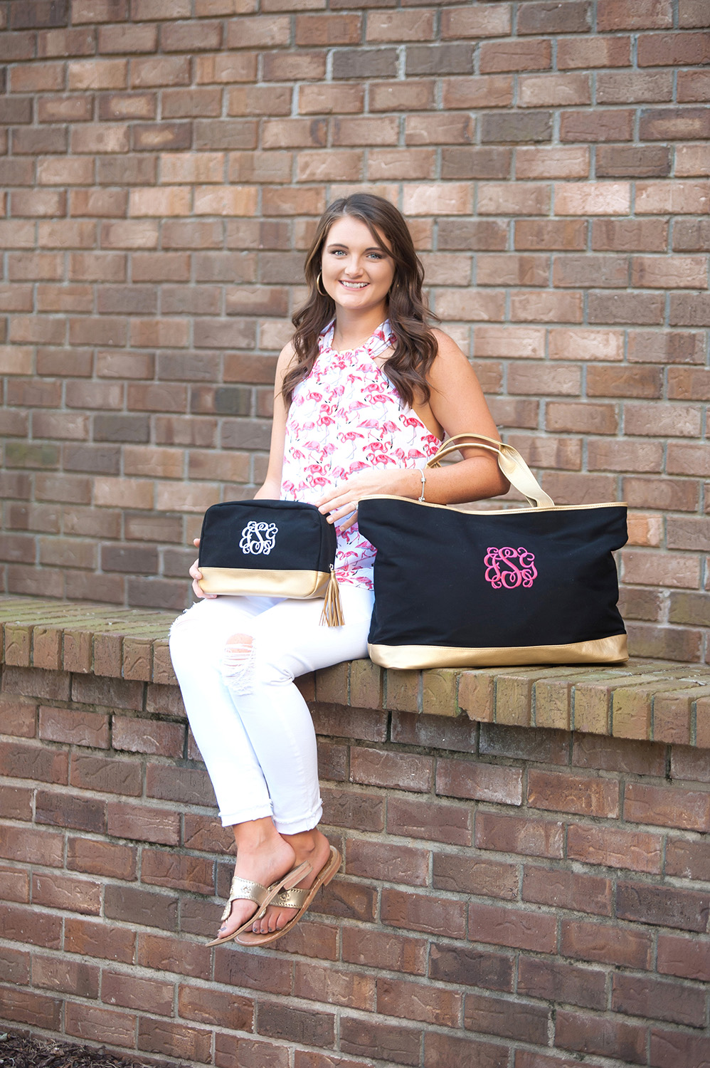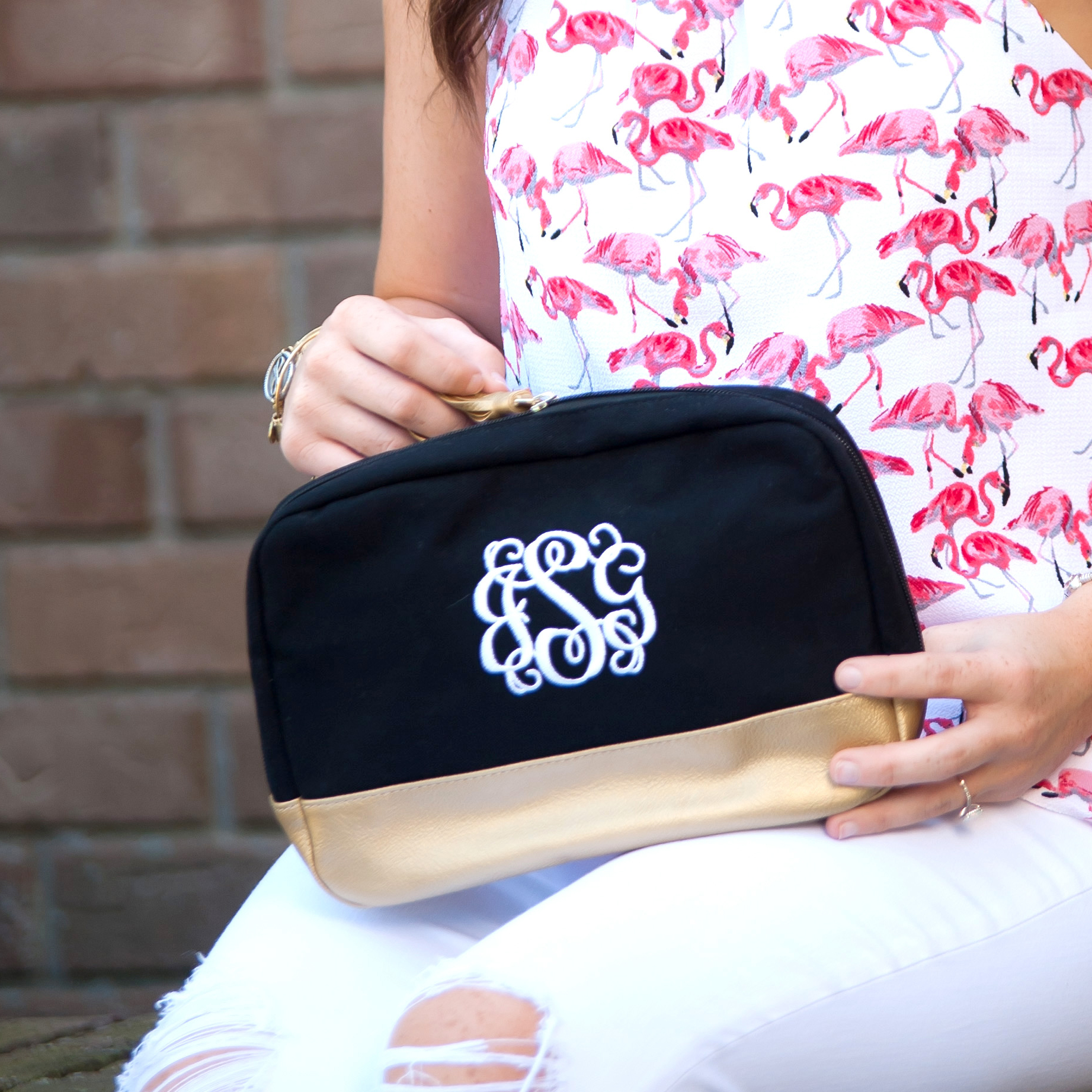 This black canvas accessory bag is the perfect size to drop your small necessities in so they are always easily accessible! This bag is great to throw in your weekend bag so nothing ever gets lost. The zipper closure keeps all of your necessities inside. This is the perfect gift for your bridal party or even a friend’s birthday! Everyone could use this durable accessory bag!