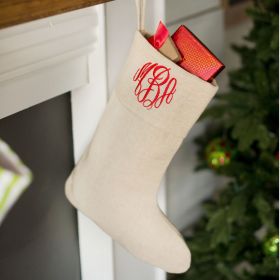 Deck the halls with our monogrammed stockings! This Juco stocking will add the perfect personalized touch to your mantle this Christmas season. The jute/cotton blend material is durable enough to hold some of Santa’s favorite stocking stuffers! Please remember that the juco material may contain natural variations in fabric, which adds to the adorable, rustic feel of this stocking!