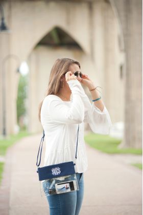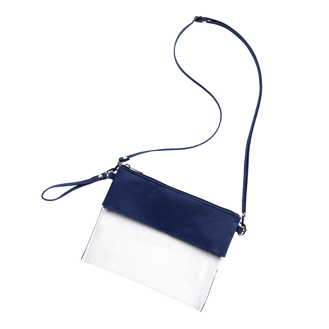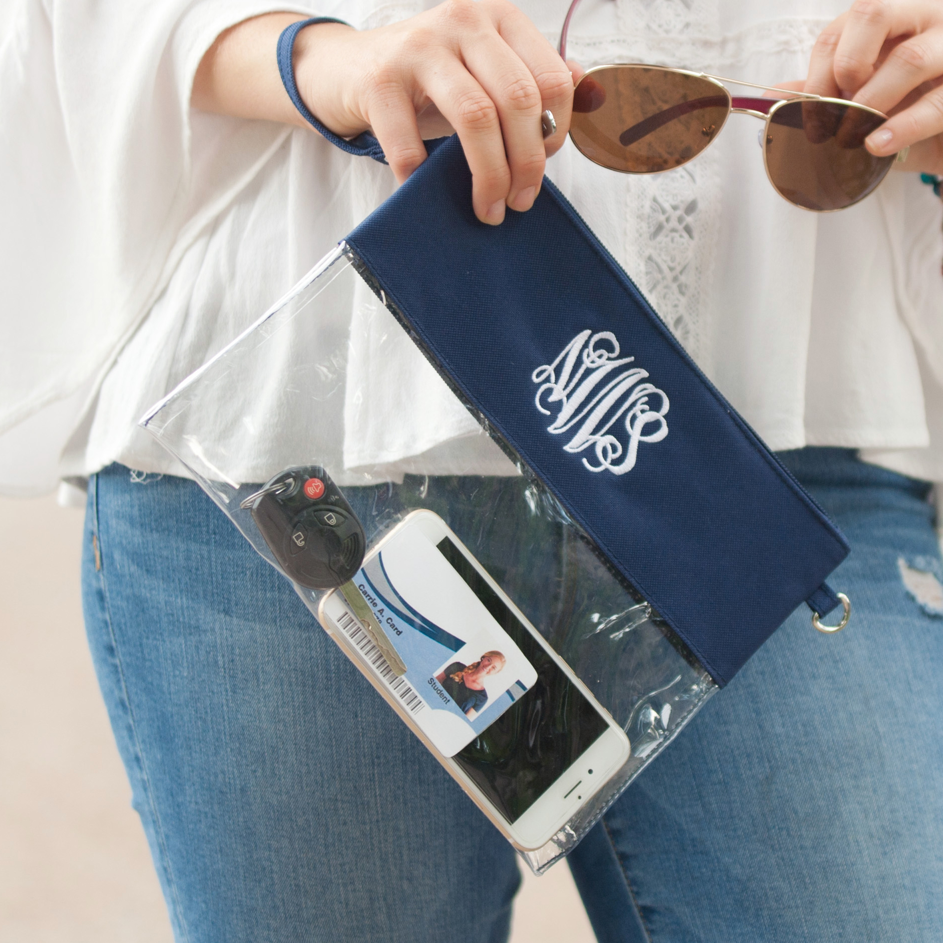 Our clear stadium crossbody bag will have you football ready. Personalize your see through purse with a monogram and cheer for your team. This clutch doubles as a wristlet. Add the removable strap for in instant monogrammed crossbody bag.