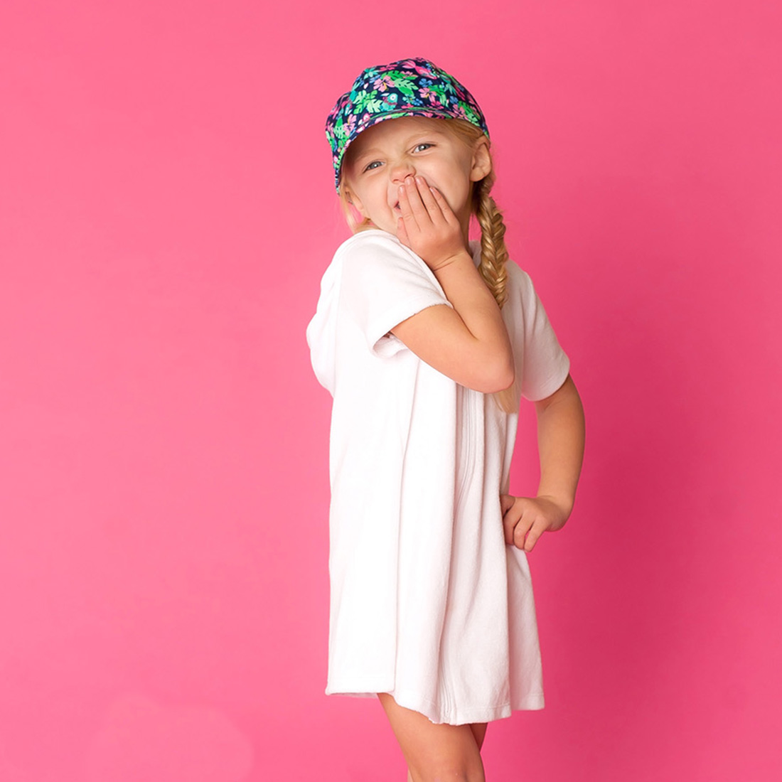 With our monogrammed baseball hats in a navy tropical pattern, she can have fun at recess! We'll embroider this kids baseball cap in your choice of font and thread color.