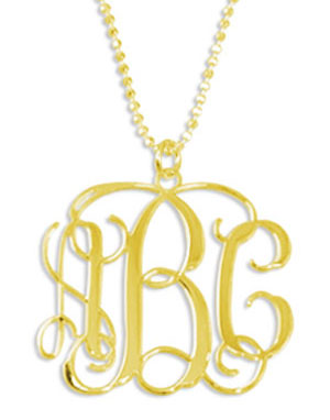 You'll love these monogram necklaces! With our 18K gold pendant, made in a cut-out technique, you can add personalized style to your jewelry box! These gold pendants are personalized with your 3 letter monogram in an Interlocking style font. Our personalized pendants are perfect for every special lady in your life. This monogrammed pendant measures 1.18 X 1.1". Includes 18" 1mm basic ball chain.