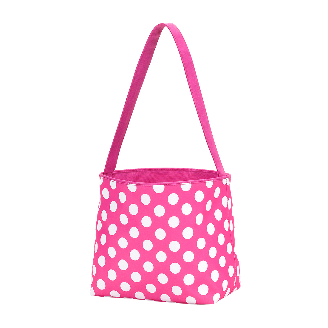 The hunt is over for Easter baskets. Polka dot Easter baskets for toddlers are perfect for your little girl to collect her Easter eggs when you go hunting eggs. Personalize this girls Easter basket with your little girls name for a classic custom touch. This Easter basket for girls is made from polyester and it measures approximately 14"x6"x8". These make the perfect first Easter basket.